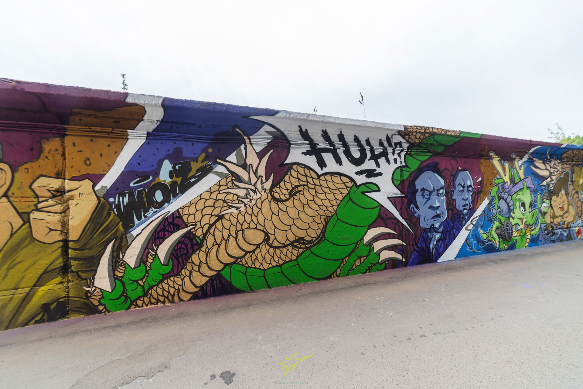 A multiregional team supervised by Loop, the Italian spray paint manufacturer, is an example of a classical graffiti team where every member develops individual theme plots, but the joint painting increases the final work effect.